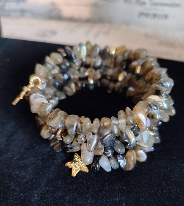 Labradorite chip bracelet, handcrafted with memory wire, will fit most wrist size as it wraps around