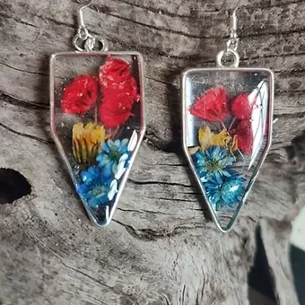 Wildflower, Red & Blue Earrings