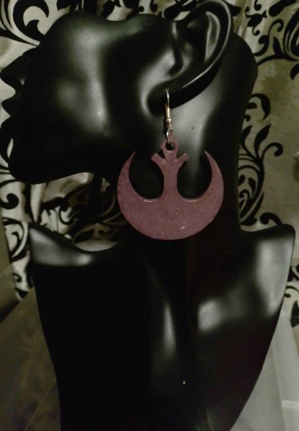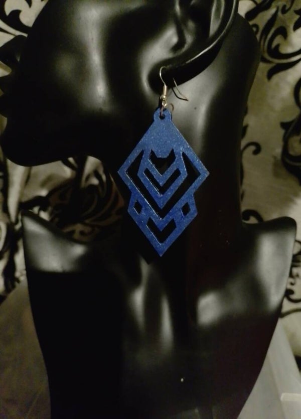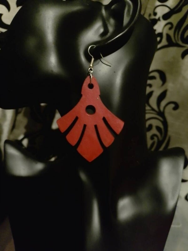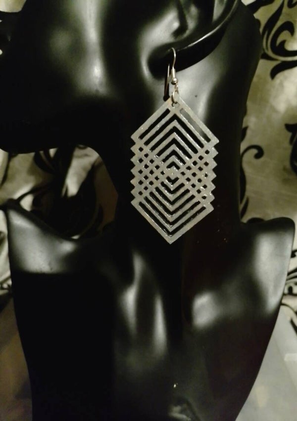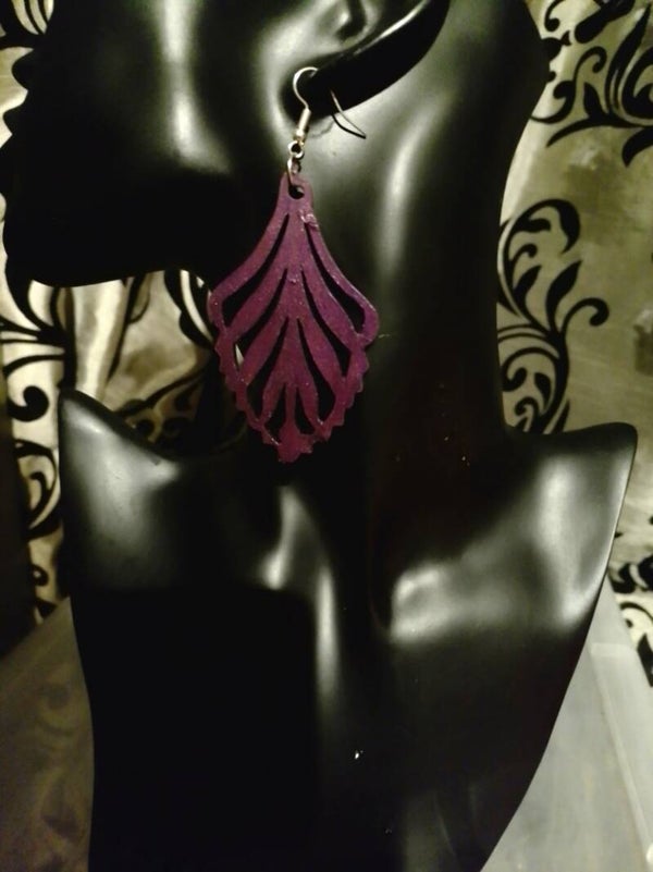 Laser cut wooden earrings, painted with vibrant metallic paint. As these earrings are made from wood, they are very light, so you can wear large, bold statement pieces without any pulling.