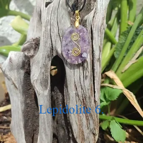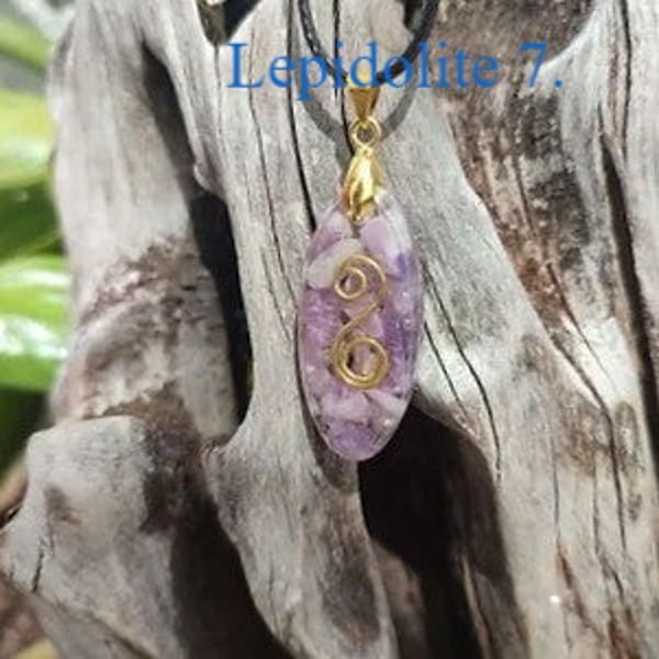 Handcrafted from natural Lepidolite stones, with a gold coloured wire coil and bale.